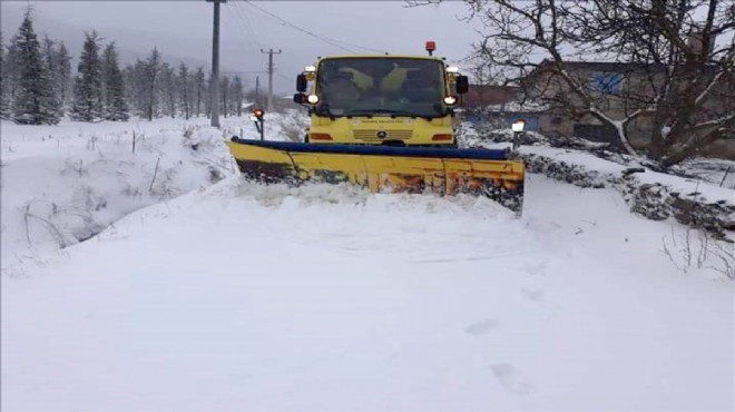 İzmir’in Ödemiş ilçesinde etkili olan kar yağışıyla beraber yolların açık tutulması için çalışmalar devam ediyor.