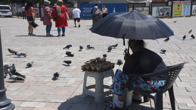 Meteoroloji'den yapılan son değerlendirmelere göre, Türkiye genelinde hava sıcaklıkları, hissedilir derece artarken, İzmir'de de yüksek sıcaklık değerlerine ulaşıldı. Özellikle öğle saatlerinde 37 dereceye kadar yükselen hava sıcaklığı, nemle birlikte daha fazla hissedildi. Her zaman kalabalık olan Konak Meydanı'nın, bugün aşırı sıcak hava nedeniyle boş kaldığı görüldü. Zorunlu olarak dışarıda olması gerekenler ile seyyar satıcılar, güneşten şemsiye altında korundu. Ağaç altlarında da güneşten kaçan kent sakinleri ile sokak hayvanlarının olduğu görüldü.