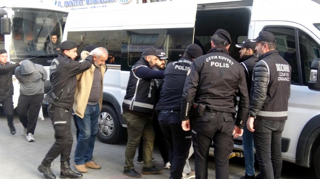 Öte yandan emniyetteki işlemleri dün tamamlanan ve aralarında örgüt lideri Soner Taşoku'nun da olduğu 32 şüpheli, Urla Adliyesi'ne sevk edildi. Şüphelilerden Taşoku dahil 24’ü tutuklanırken, 6’sı savcılıktan, 2’si adli kontrol şartıyla olmak üzere 8’i serbest bırakıldı. Operasyondaki tutuklu sayısı, 29'a yükseldi. Diğer 19 şüphelinin ise işlemlerinin sürdüğü belirtildi. (DHA)