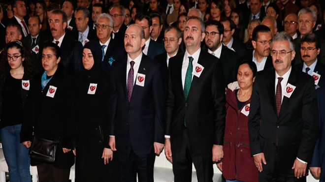 İçişleri Bakanı Süleyman Soylu, Adalet Bakanı Abdulhamit Gül'ün de katıldığı İzmir Adalet Sarayı'ndaki törende, şehitler için saygı duruşunda bulunuldu, İstiklal Marşı okundu.