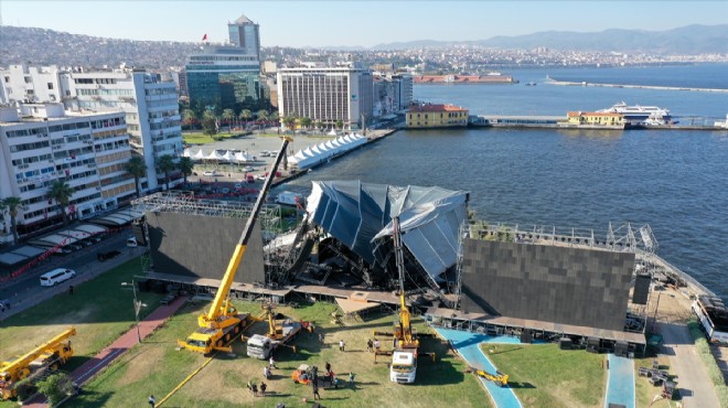 Mega Star için Cumhuriyet Meydanı’nın Kordonboyu tarafında kurulan dev sahne işçilerin çalıştığı sırada henüz bilinmeyen bir nedenle çöktü. 1 işçinin yaralandığı olayın ardından sabitlenen sahnede söküm çalışmaları başlarken, kaza sonrası AK Parti cephesinden Büyükşehir Belediyesi'ne tepki geldi.