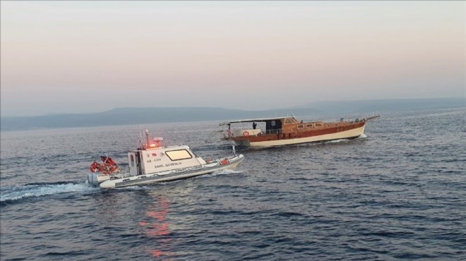 İzmir'in Seferihisar ilçesinde, balık çiftliği kafesine çarpan teknedeki 107 sığınmacı kurtarıldı.