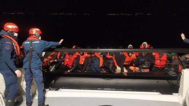 İzmir açıklarında Yunanistan unsurlarınca Türk karasularına geri itilen 46 düzensiz göçmen ile motor arızası nedeniyle sürüklenen 55 düzensiz göçmen kurtarıldı.