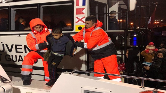 Çeşme ilçesi kıyılarından dün denize açılan, tamamı Afganistan uyruklu 6'sı erkek, 3'ü kadın ve 11'i çocuk toplam 20 kaçak göçmenlerin lastik botu, motor arızası nedeniyle sürüklenmeye başladı. Göçmenlerin yardım talebi üzerine bölgeye giden Sahil Güvenlik Botu ekibi, lastik bottaki kaçakları kurtardı. Kıyıya getirilen göçmenler, kimlik tespit işlemi sonrası İl Göç İdaresi Müdürlüğü'ne teslim edildi. (DHA)