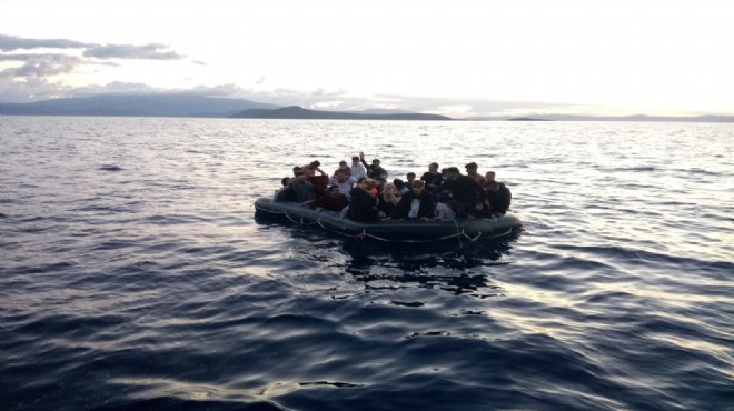 İzmir'in Çeşme ilçesinde, Yunan unsurlarınca Türk kara sularına itilen 33 düzensiz göçmen karaya çıkarıldı.