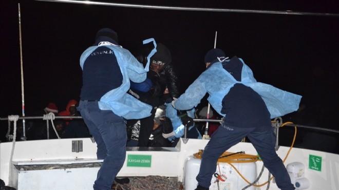 Dikili ilçesi açıklarında da yine Türk kara sularına itilen lastik bottaki 29 sığınmacıya ulaşıldı.