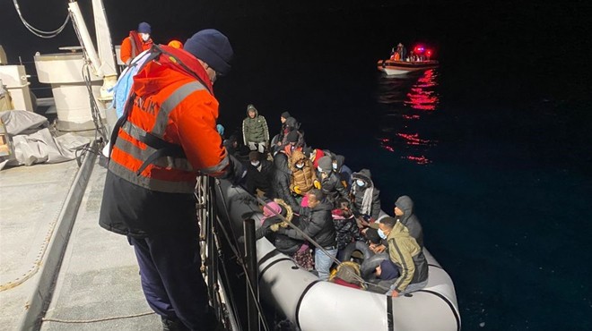 Sahil Güvenlik Komutanlığından alına bilgiye göre Dikili ilçesi açıklarında görevli Sahil Güvenlik mobil radarı tarafından lastik botta bir grup düzensiz göçmen olduğu tespit edildi.