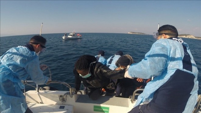 İzmir'in Dikili ilçesi açıklarında, Yunanistan unsurlarınca Türk kara sularına geri itilen 53 göçmen karaya çıkarıldı.