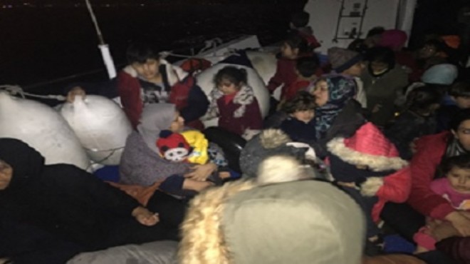 Çeşme ilçesinde, yasa dışı yollarla yurt dışına çıkmaya çalışan 54 mülteci yakalandı.