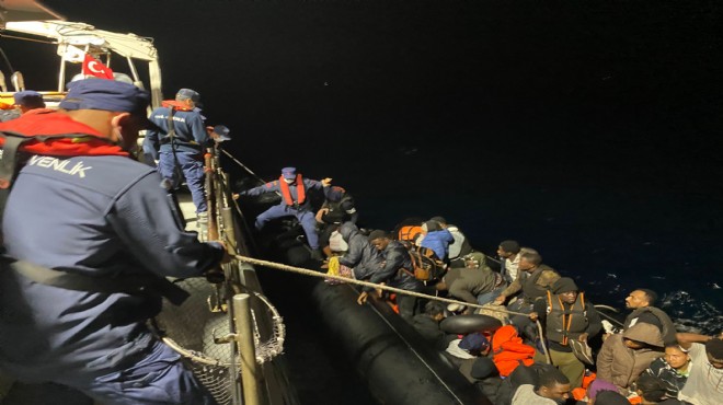 Yine Dikili ilçesi açıklarında durdurulan lastik bottaki 48 düzensiz göçmen yakalandı.