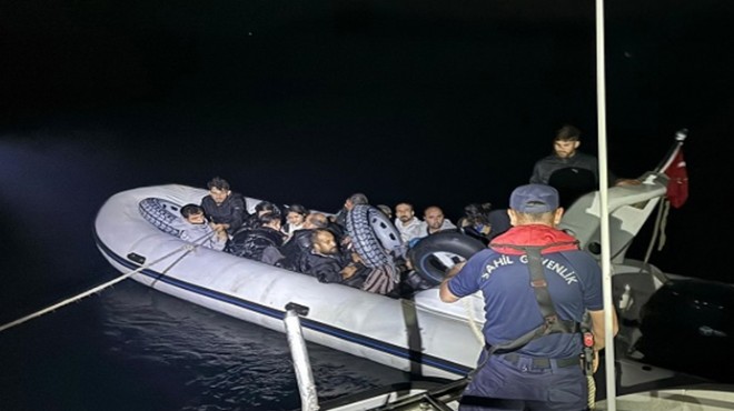 Çeşme ve Urla açıklarında durdurulan lastik botlardaki 9'u çocuk 32 düzensiz göçmen yakalandı.
