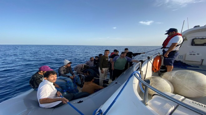 Dikili açıklarında durdurulan lastik bottaki 20'si çocuk 38 düzensiz göçmen de yakalandı.