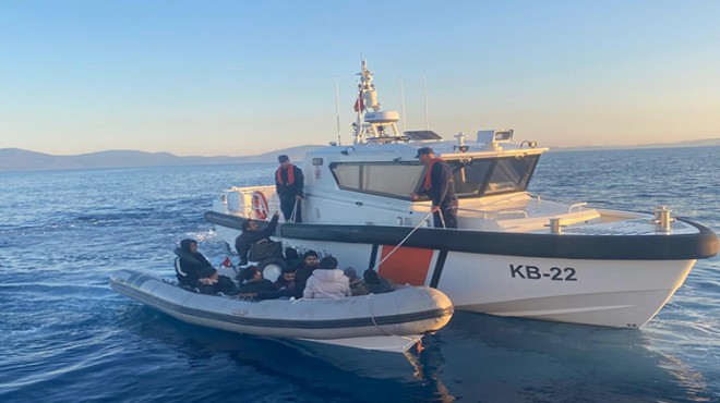 Seferihisar ilçesi açıklarında da Sahil Güvenlik gemisi tarafından tespit edilen lastik bot durduruldu.