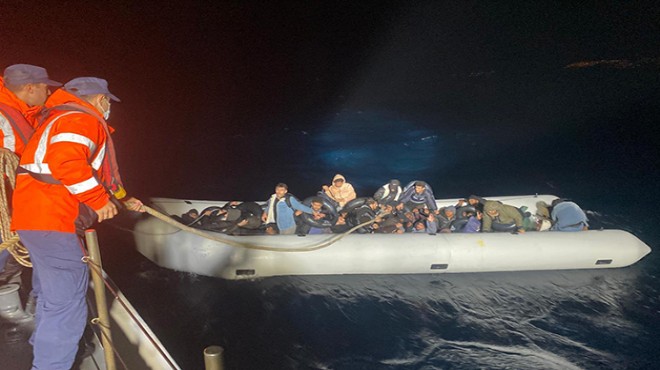 Sahil Güvenlik ekiplerince durdurulan hareketli lastik bottaki 41 düzensiz göçmen yakalandı.