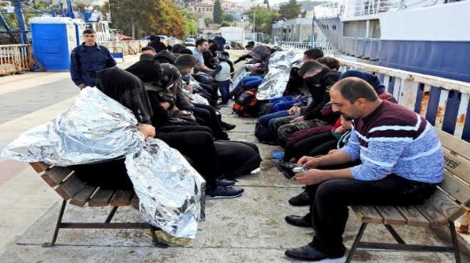 Devriye görevindeki TCSG 109 Sahil Güvenlik botu, bugün saat 08.00'de Boğazadası önlerinde, bir lastik bot belirledi. Su alarak batma tehlikesi geçiren lastik bottaki kaçakları kurtaran Sahil Güvenlik ekipleri, aralarında çocuk ve kadınların da bulunduğu Suriye uyruklu 66 kaçağı sahil güvenlik botuna alarak Çeşme İskelesi'ne getirdi. Kaçakların bazılarının kendilerini ve çocuklarını ıslanmamak için alüminyum folyoya sardığı görüldü. Sahil Güvenlik ekipleri, kaçakların can yeleklerini ve şişirilmiş araç iç lastiklerini toplayarak imha edilmek üzere el koydu. Uluslararası Göç Örgütü temsilcileri de, göçmenlere yiyecek ve içecek dağıtarak ihtiyaçlarını karşıladı. Kaçakların işlemlerinin tamamlanmasının ardından İzmir Göç İdaresi Müdürlüğü'ne gönderilecekleri öğrenildi. (DHA)
