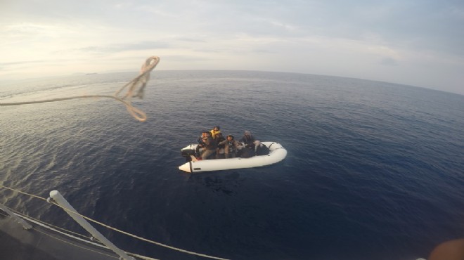 Karaburun ilçesi açıklarında ise motor arızası nedeniyle sürüklen lastik bot içerisindeki 12 düzensiz göçmen kurtarılarak karaya çıkarıldı.