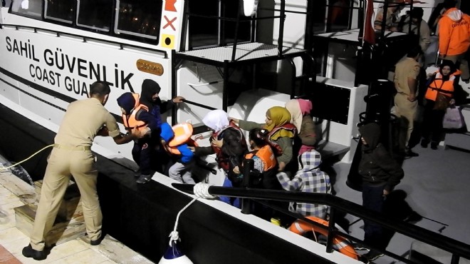 Çeşme Körfezi'nde devriye görevi yapan TCSG 30 Sahil Güvenlik Botu, dün saat 23.30'da, Dalyan Uçburun açıklarında bir lastik bot belirledi. Müdahale eden ekipler, bottaki, aralarında kadın ve çocukların da bulunduğu Suriye uyruklu 60 kaçağı, Çeşme İskelesi'ne getirdi.