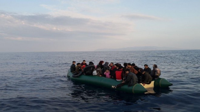 İzmir'in Dikili ilçesi açıklarında Yunanistan unsurlarınca Türk karasularına itilen lastik bottaki 44 düzensiz göçmen kurtarıldı.