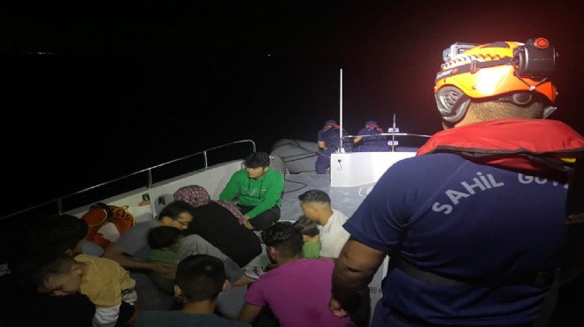 Dikili açıklarında da Sahil Güvenlik mobil radarınca tespit edilen ve görevlendirilen Sahil Güvenlik Gemisi tarafından durdurulan hareketli lastik bottaki 41 düzensiz göçmen yakalandı.