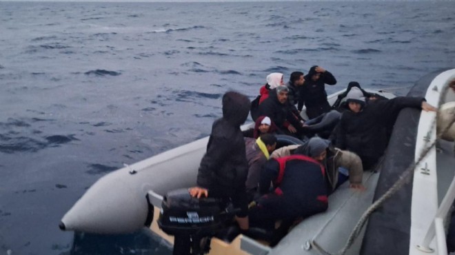 Dikili ve Selçuk açıklarında durdurulan lastik botlardaki 102 düzensiz göçmen yakalandı.