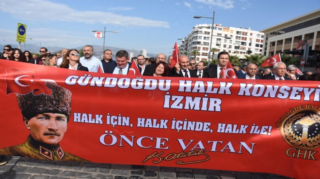 Bu yıl 12'nci kez yapılan 'Ata'ya saygı yürüyüşü', her sene olduğu gibi Alsancak Mahallesi'nde bulunan İzmir Limanı önünden başlatıldı. İzmirliler, Atatürk portrelerinden oluşan 350 metre uzunluğundaki dev bayrağı taşıyarak, Cumhuriyet Meydanı'na kadar yürüdü. Türk bayraklarının taşındığı yürüyüşte Büyükşehir Belediye Başkanı Tunç Soyer, CHP İzmir İl Başkanı Deniz Yücel, CHP'li bazı belediye başkanları ile CHP'li bazı milletvekilleri, Cumhuriyet Meydanı'na kadar yürüdü.