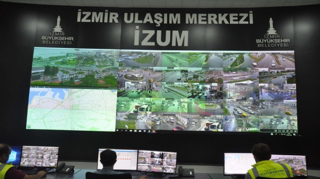 İzmir Büyükşehir Belediyesi Ulaşım Dairesi Başkanlığı Trafik ve Denetim Şube Müdürlüğü'nce devreye alınan "Tam Adaptif Trafik Yönetim, Denetim ve Bilgilendirme Sistemi", bir yıldır sorunsuz şekilde çalışıyor. Sistemin yönetildiği İzmir Ulaşım Merkezi (İZUM), yeni çalışmalarla kent trafiğini kontrol altına almayı hedefliyor. Buna göre, kentteki toplu taşıma araçları sisteme entegre edilecek. Ardından, otobüsler de trafikte tıpkı tramvayda olduğu gibi geçiş üstünlüğüne sahip olacak. Şuanda 1000 kamera ile trafiği kontrol eden İZUM, otobüslere takılı olan 5 bin kameranın da sisteme dahil edilmesinin ardından, 6 bin kamera ile şehir trafiğini anlık izleyebilecek. Yine otobüs içerisinde yaşananlar da bu merkezden an be an görülebilecek. İzmir Büyükşehir Belediyesi Genel Sekreteri Buğra Gökçe, kentteki tüm kavşak kesişimlerini, tüm toplu taşıma hatlarını, ulaşıma dair her şeyi İZUM'dan anlık olarak izlediklerini anımsatarak, "Şuanda bin kamera ile trafiği izleyerek, olası sorunlara veya kazalara hemen müdahale edebiliyoruz. Kameraların açısı, hareketliliği, çözünürlüğü ve mesafesi yüksek. Çok uzak alanları dahi buradan görüp müdahale edebiliyor. Burası aslında çok amaçlı kullanabiliyoruz. Gördüğümüz aksaklıkların ardından ilgili birimlerin tümünü de buradan sevk ve idare edebiliyoruz" diye konuştu.