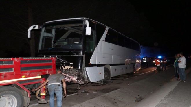 Kaza dün saat 21.30 sıralarında, İzmir - Çanakkale Yolu Tahtalı Köprüsü Mevkii'nde meydana geldi. Ailesiyle İzmir'den Edremit yönüne giden Bülent Karabulut, yönetimindeki 35 GA 1219 plakalı hafif ticari aracın direksiyon kontrolünü bir anda yitirdi. Yolun karşısına geçen hafif ticari araç, Ayvalık'tan İzmir yönüne gelen Menderes Husu'nun kullandığı 45 TG 971 plakalı tur otobüsüyle çarpıştı. Kazayı gören diğer sürücüler durumu sağlık ve güvenlik güçlerine bildirdi. İhbar üzerine bölgeye çok sayıda 112 sağlık ekibi sevk edildi.