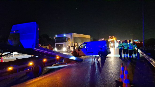 İzmir Otoyolu'nda sürücüsünün kontrolünden çıkan hafif ticari araç bariyerlere çarptıktan sonra devrilerek metrelerce sürüklendi. Kazada emniyet kemeri takılı olan yolcu hafif şekilde yaralanırken, kemeri takılı olmadığı öğrenilen sürücü ise hayatını kaybetti.