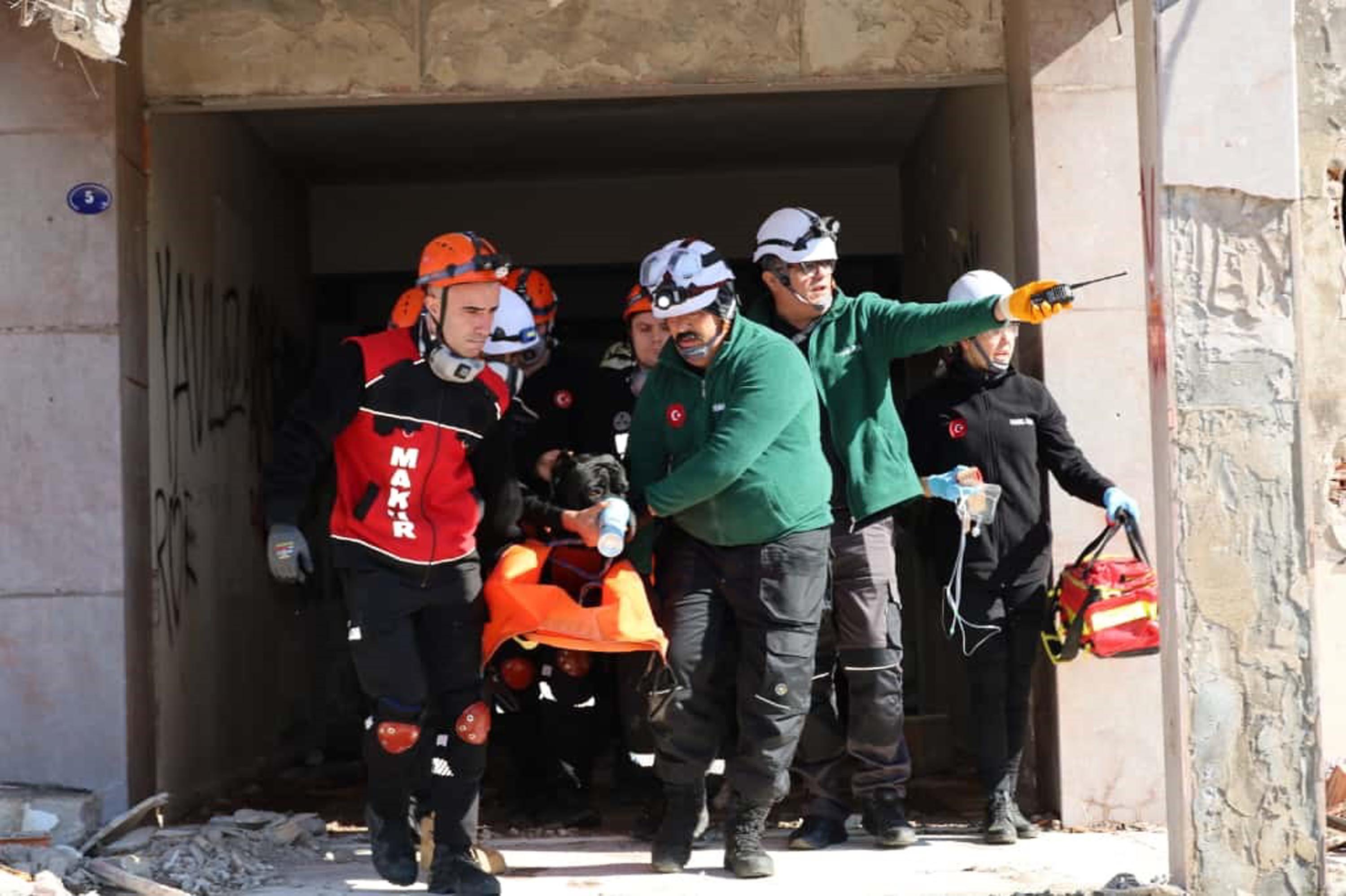 Ayrıca Menemen'de yıkılmış bir binada deprem tatbikatı düzenlendi. İl Emniyet Müdürlüğü, İl Jandarma Komutanlığı, AFAD, İtfaiye ile arama kurtarma ekipleri tatbikata katılım sağladı. Arama kurtarma köpekleri de tatbikatta yer aldı. Vali Yardımcısı İsmail Çorumluoğlu, AFAD İzmir İl Müdürü Nazif Ekinci, Menemen Belediye Başkanı Aydın Pehlivanoğlu, Menemen Kaymakamı Vedat Yılmaz da tatbikatı yerinde izledi. Arama kurtarma ekipleri, yıkılan binada kalanları kurtarmak için çalışma başlattı. 'Binada kimse var mı' diye ekipler tarafından çağrılar yapıldı. Arama kurtarma ekipleri, arama köpekleri ile binada canlıları tespit etti. Ardından ekipler binaya gelerek yaralılara kurtardı. Ayrıca yıkılmış binanın çatısında mahsur kalan yaralı için ve kurtarma çalışması yapıldı. Silahlı Kuvvetlere ait bir helikopter, binanın üstünde sabit kaldı. Ardından askerler halatla binanın çatısına sedyeyle indi. Sedyeye sabitlenen yaralı, helikoptere çekilerek güvenli bir bölgeye götürüldü. Tatbikat, başarıyla tamamlandı.