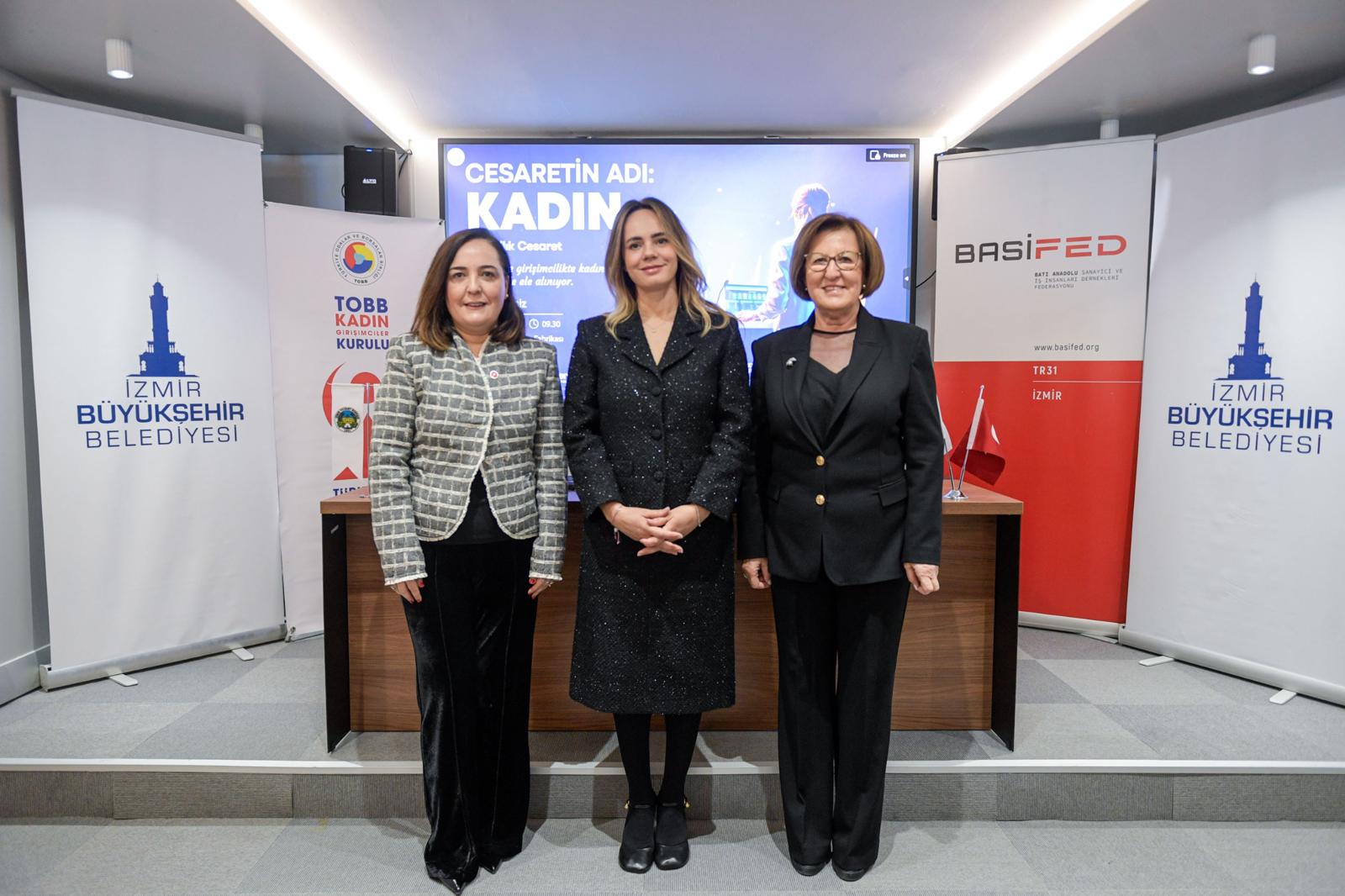 İzmir Büyükşehir Belediyesi, Batı Anadolu Sanayici ve İş İnsanları Dernekleri Federasyonu (BASİFED) ve Türkiye Odalar ve Borsalar Birliği (TOBB) İzmir Kadın Girişimciler Kurulu iş birliğinde 9 Mart’ta “Cesaretin Adı: Kadın” zirvesi düzenleniyor. Projenin fikir lideri İzmir Büyükşehir Belediye Başkanı Dr. Cemil Tugay’ın eşi Öznur Tugay, zirve öncesi düzenlenen basın toplantısında “Buluşmanın İzmir’den yükselen ilham verici bir ses olacağına yürekten inanıyorum” dedi.