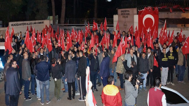 NATO Müttefik Kara Kuvvetleri Komutanlığı'nın yer aldığı Orgeneral Vecihi Akın Kışlası'nın duvarına da asılan Türk bayraklarını, iddiaya göre Amerikalı nöbetçi subayın gece indirtmek istediği öne sürüldü. Bunun üzerine bugün akşam saatlerinde şehidin baba ocağı önünde toplanan vatandaşlar, olayı protesto etmek için Orgeneral Vecihi Akın Kışlası'nın duvarına Türk bayrakları astı. Sık sık 'Şehitler ölmez vatan bölünmez' sloganları atan kalabalığa caddeden araçlarıyla geçen vatandaşlar da korna çalarak destek oldu. Olayla ilgili AK Parti İzmir İl Başkanı Bülent Delican ve Büyük Birlik Partisi İzmir İl Başkanı Erdem Öksüz ortak basın açıklaması yaptı.