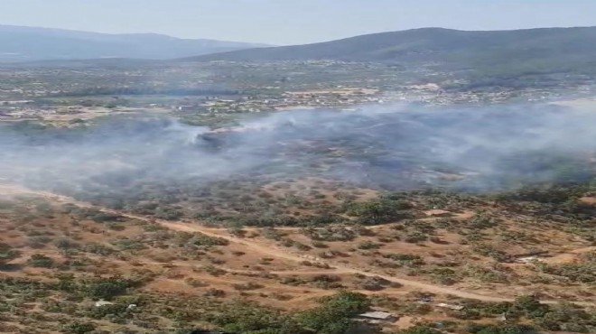 İzmir'in Torbalı ilçesinde çıkan orman yangını ekiplerin havadan ve karadan 2 saatlik müdahalesiyle saat 17.30'da kontrol altına alındı. Ekiplerin, soğutma çalışmaları sürüyor. (DHA)