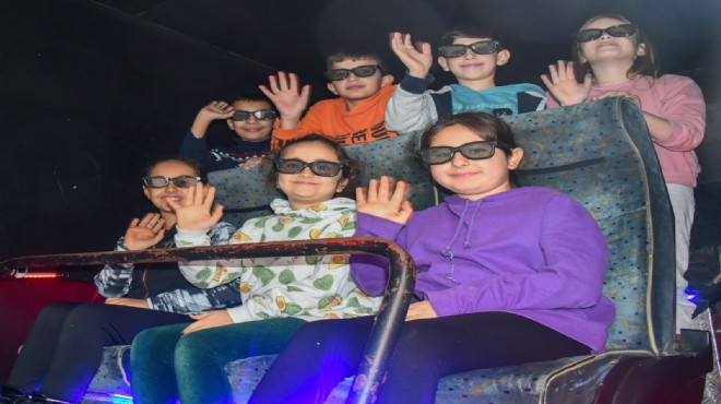 Cumhuriyet’in 100’üncü yılı kutlamaları çerçevesinde kentin 11 farklı noktasındaki Bizİzmir Dayanışma Noktaları’nda gezici sahne ile düzenlenen masal anlatımı, pantomim ve sihirbaz gösterilerinin ardından çocuklar, şimdi de 12D sinema deneyimi yaşıyor. İzleyenlerin ekranda gördüğü hareketleri filmin içindeymiş gibi hissetmesini sağlayan teknoloji ile çocuklar; yapay doğa gezisi yapıyor, çikolata adasını ziyaret ediyor ve safariye çıkıyor.