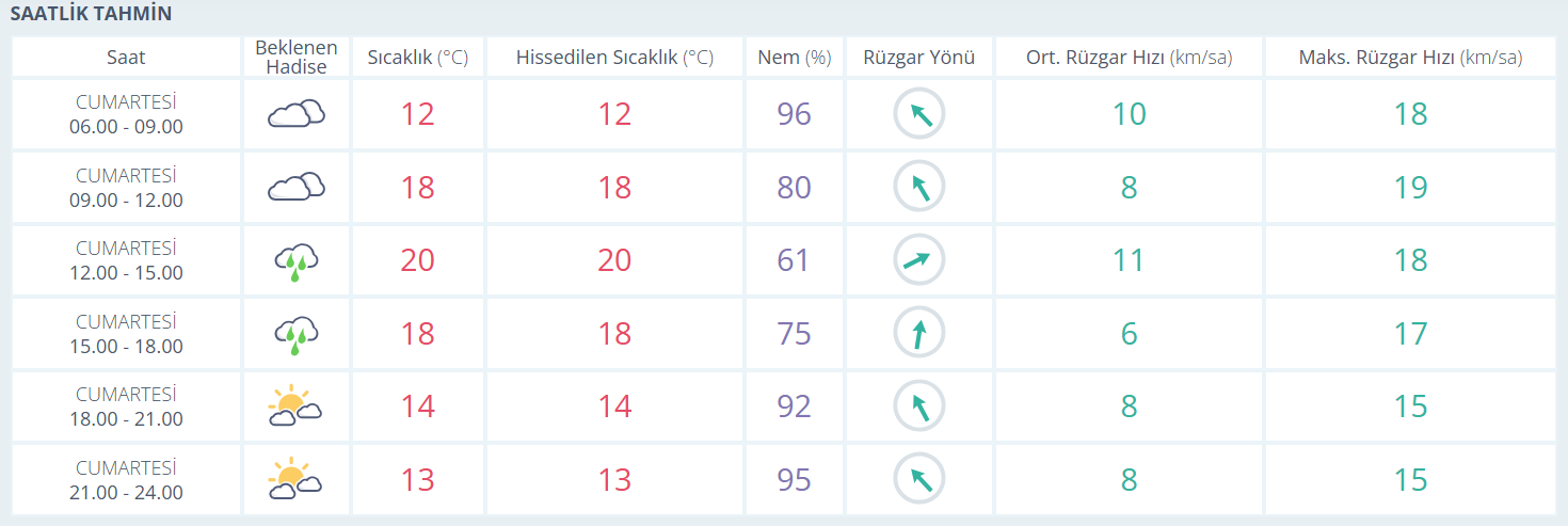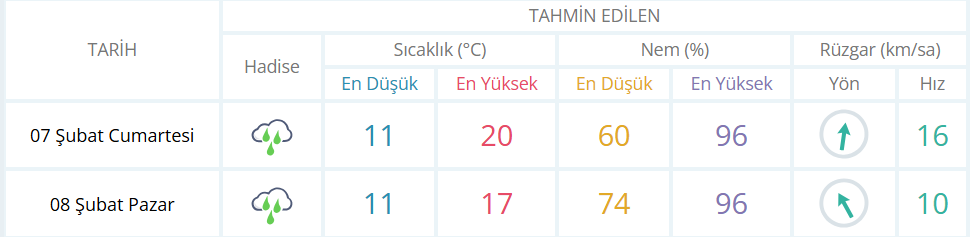 Pazar günü ise 17 derece olacak. Sabah ve öğle saatlerinde yağmur geçişleri görülecek.