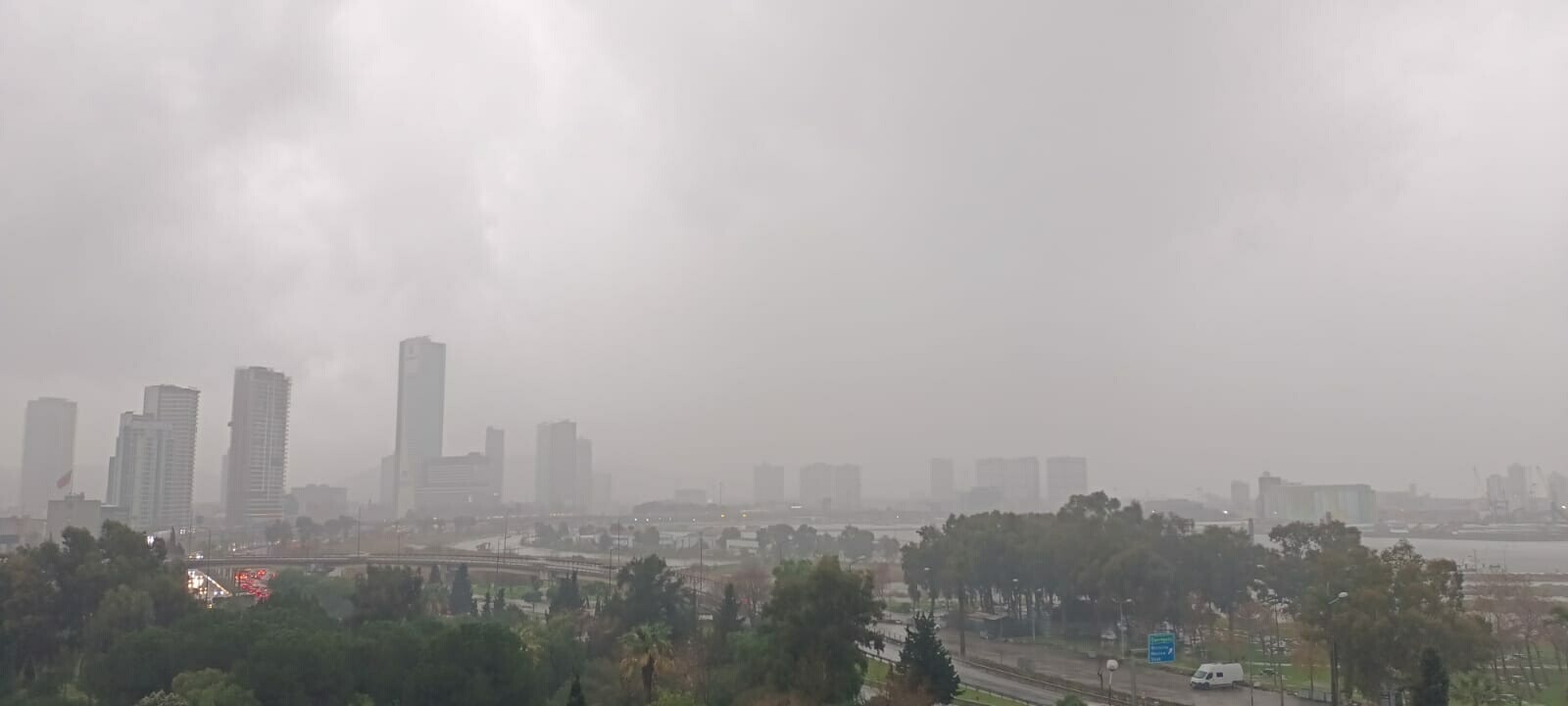İzmir'de sağanak ve kuvvetini artıran rüzgar, kent genelinde etkisini sürdürüyor. Kuvvetli rüzgar nedeniyle kentin en yoğun yerlerinden olan Konak ilçesindeki Alsancak kordon boyunda deniz taştı. Taşan su, kaldırımla birleşti. Rüzgar sebebiyle deniz ulaşımının yapılamadığı kentte, Alsancak Limanı’nın çevresi sularla doldu. İzmir Büyükşehir Belediyesi tarafından inşa edilen geçici fırtına duvarı sayesinde taşan deniz suları hem çim alana hem de iş yerlerine ulaşamazken, herhangi bir baskın yaşanmadı. (DHA)
