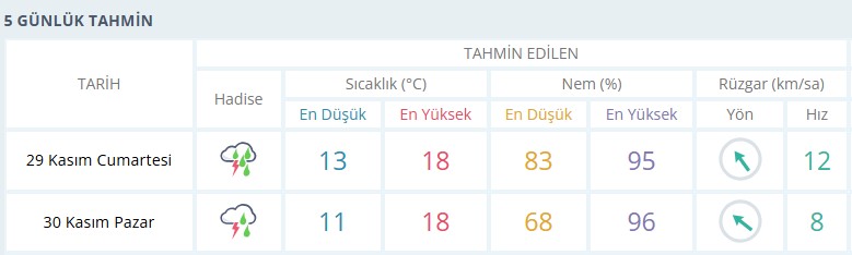 Meteoroloji’ye göre İzmir’de cumartesi günü gün boyu yağış beklenirken hava sıcaklığı ise 18 derece olacak. Sağanak yağışların kentte pazar günü de devam etmesi bekleniyor. Hava sıcaklığı ise yine 18 derece olacak. Kentte gece sıcaklıklarının ise düşüş göstermesi bekleniyor.