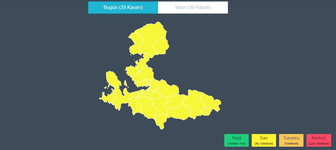 Hava durumu potansiyel tehlikelidir: Tahmin edilen meteorolojik hadise olağandışı olmamakla birlikte, meteorolojik şartlardan etkilenebilecek faaliyetler konusunda dikkatli olunmalıdır.