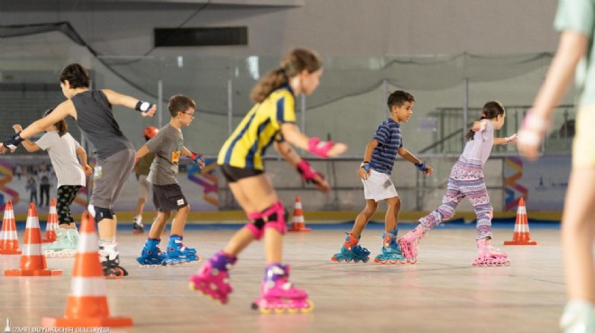 Bornova'daki Âşık Veysel Rekreasyon Alanı'nda bulunan Buz Sporları Salonu'nun zeminini yenileyen İzmir Büyükşehir Belediyesi, tekerlekli paten eğitimine devam ediyor. İzmirlilerin tesisten yıl boyunca daha verimli yararlanabilmesi için buz sporları sezonunun sona ermesiyle parke döşenerek yenilenen zeminde tekerlekli paten eğitimi alan minikler ve velileri hizmetten mutlu.