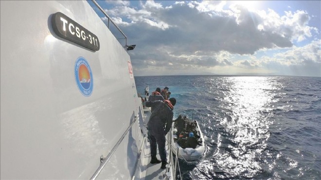 Çeşme açıklarında tespit edilen lastik bottaki 16 düzensiz göçmen yakalandı.