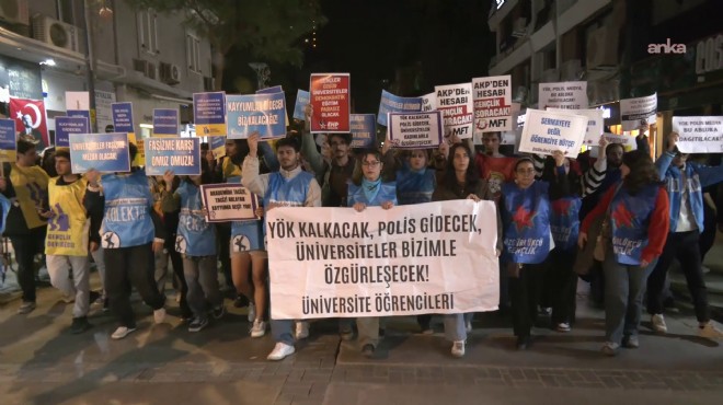 Alsancak ÖSYM binası önünde bir araya gelen öğrenciler, “Üniversiteler bizimdir bizim kalacak”, “YÖK polis medya... Bu abluka dağıtılacak” ve “Kampüsten sokağa hesap sormaya” sloganlarıyla birlikte Dokuz Eylül Üniversitesi önüne yürüyüş gerçekleştirdi.