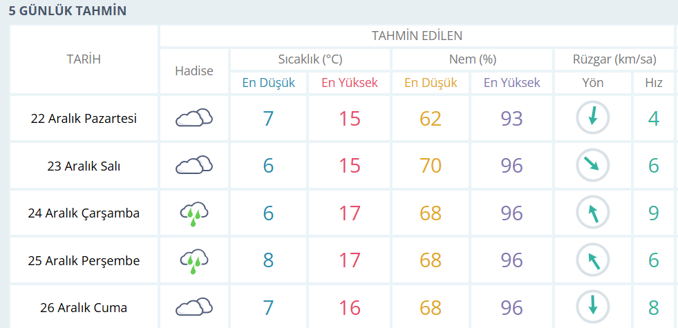 Cuma günü ise çok bulutlu ve 16 derece olacak.