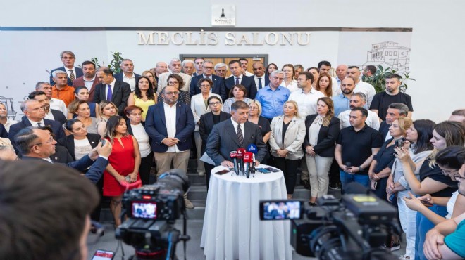 İzmir Büyükşehir Belediye Meclisi CHP Grubu, İstanbul İl Başkanlığı’na kayyum atanmasına ve emniyet güçlerinin parti örgütüne yönelik sert tutumuna basın açıklaması ile tepki gösterdi. İzmir Büyükşehir Belediye Başkanı Dr. Cemil Tugay, “Şu anda hepimiz için hayati olan değerler çok ciddi yara alıyor. Bunlardan en önemlisi demokrasi. Gücümüz yettiğince bir taraftan görevimizi yerine getirirken bir taraftan da partimizin savunduğu ilkeler için mücadeleye devam edeceğiz. Umuyorum CHP’ye yönelik bu hukuksuz müdahaleler derhal son bulur” dedi. CHP Grup Sözcüsü Yağmur Yurdakul Özkan da “Bu aziz milletin savaş meydanlarında kurduğu Cumhuriyet Halk Partisi’ni darbelerinizle teslim alamazsınız” diye konuştu.