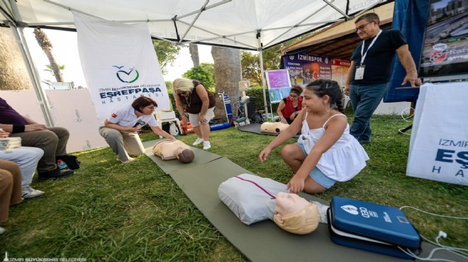 94. İzmir Enternasyonal Fuarı’nda yerini alan Türkiye’nin ilk ve tek belediye hastanesi İzmir Büyükşehir Belediyesi Eşrefpaşa Hastanesi, fuar ziyaretçilerine ilkyardım eğitimleri verdi. Hastane dışında gerçekleşen ani kalp durması vakalarında hayati önem taşıyan kalp masajı uygulaması, 90 saniye gibi kısa bir sürede stant ziyaretçilerine uzman hekimler ve hemşireler tarafından uygulamalı olarak anlatıldı. Aynı zamanda Acil Tıp Uzmanı olan Eşrefpaşa Hastanesi Başhekimi Doç. Dr. Başak Bayram, İzmir Büyükşehir Belediyesi tarafından şehrin farklı noktalarına yerleştirilmesi planlanan otomatik elektroşok cihazını da tanıttı. İlk müdahale sırasında başarı oranını artıracak cihaz, ani kalp durma vakalarında vatandaşlar tarafından sesli komut desteği sayesinde rahatlıkla kullanılabilecek.