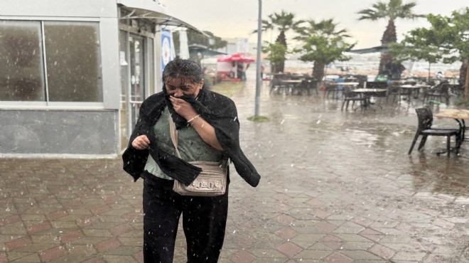 Güneşli havaya aldanarak Karşıyaka ilçesindeki Bostanlı Sahili'nde yoğunluk oluşturan vatandaşların dolu nedeniyle zor anlar yaşadığı gözlendi.