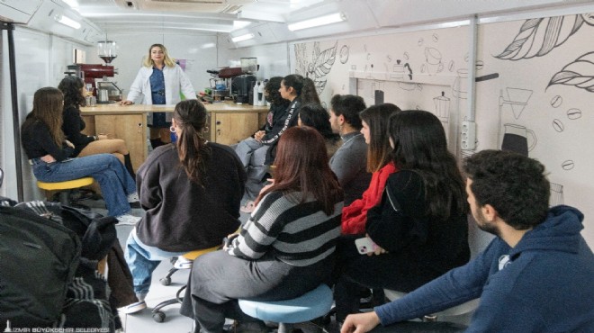 İzmir Büyükşehir Belediyesi’nin kahve hazırlama ve sunma alanında gençlere mesleki beceri kazandırmak için yollara çıkardığı Mobil Barista Otobüsü Aşık Veysel Gençlik Merkezi’ndeydi. Otobüsün ikinci durağı ise Çiğli Gençlik Merkezi olacak.