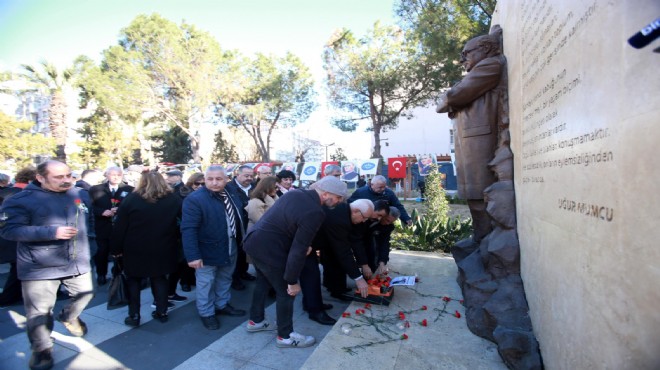 100. Yıl Uğur Mumcu Parkı'ndaki anıtı önünde gerçekleştirilen törene, Karabağlar Belediye Başkanı Muhittin Selvitopu, İzmir Gazeteciler Cemiyeti Yönetim Kurulu Üyesi Mücahit Bektaş, meclis üyeleri, siyasi parti ve sivil toplum kuruluşu temsilcileri ve çok sayıda vatandaş katıldı.