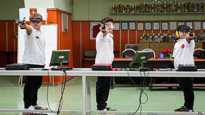 Konak ilçesindeki atıcılık merkezinde antrenmanlarına devam eden genç sporcular, Paris 2024 Olimpiyat Oyunları'nda 10 metre havalı tabanca karışık takım kategorisinde gümüş madalya kazanan milli sporcu Yusuf Dikeç'in açtığı yolda olimpiyatlara gitmeyi hedefliyor.