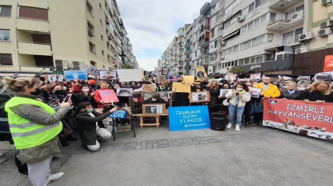 Sokak hayvanlarına yönelik başlatılan uygulamalara tepki göstermek için tüm yurtta eş zamanlı eylemler düzenlendi. Eylemlerin İzmir’deki adresi ise Alsancak Kıbrıs Şehitleri Caddesi girişi oldu. Hayvan haklarına yönelik çalışmalar yürüten sivil toplum kuruluşları, platformlar, dernekler ve gönüllüleri bir araya getiren eylemde, yasaya aykırı sokak hayvanı toplama uygulaması yapan yerel yönetimler ve zehirleme yapan kişiler protesto edildi. Ellerinde “Barınaklar yaşam alanı değil ölüm kampıdır” ve “Sokak hayvanları sahipsiz değil” yazılı dövizler taşıyan hayvanseverler, sık sık “Barınak cinayettir” sloganı attı. Bir hayvan hakları savunucusunun farkındalık yaratmak için “Tehlikeli ırk yoktur tehlikeli insan vardır” yazılı kafese girdiği eyleme, şiddete uğrayan köpekler de sahipleriyle katıldı.