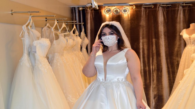 İzmirli tasarımcı Zeynep Acar, Çin'in Wuhan kentinde ortaya çıkan ve dünyayı etkisi altına alan 'koronavirüs'e dikkat çekmek amacıyla hem gelinlik hem de abiye elbiseler için maske yaptı.