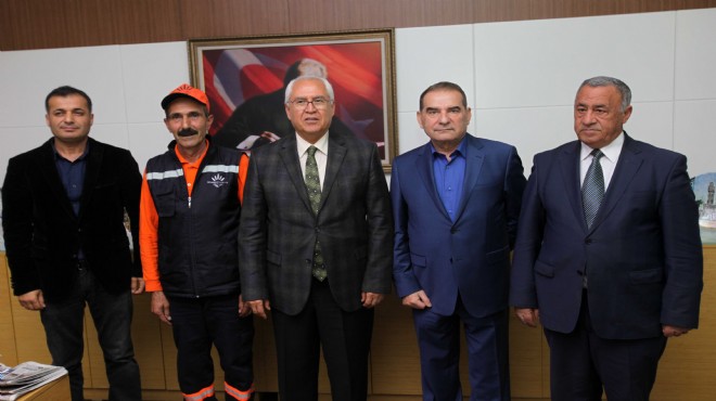 İşçinin dürüstlüğünden çok etkilenen Ertuğrul Solak ise daha sonra Karabağlar Belediyesi Halkla İlişkiler Müdürlüğü’ne yazı yazarak bunu Başkan’a bildirdi. Başkan Muhittin Selvitopu da hem Ertuğrul Solak hem de temizlik işçisi Necati Gök’ü makamında kabul etti. Temizlik İşleri Müdürü Mehmet Aras ve Karabağlar Rehberlik Araştırma Merkezi Müdür Yardımcısı İlhan Angün’ün de bulunduğu ziyarette, Temizlik İşçisi Necati Gök’ü tebrik eden Başkan Selvitopu,”Ben de onur duydum ve mutlu oldum. Çalışanlarımızın kenti sahiplenmesi çok önemli. Biz kendisine sembolik bir armağan hediye ettik. Böyle davranışlara sahip çıkmamız lazım” diye konuştu.